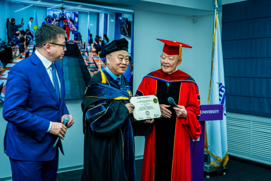Dr. Chan Young Bang, President of KIMEP University, received the delegation. On behalf of the university, Dr. Bang awarded an honorary doctorate in international relations to Professor Shen Zhihua, Director of the IIAS Center for Eurasian Studies, in recognition of his remarkable contributions in the fields of the Cold War international history and Korean Peninsula studies.