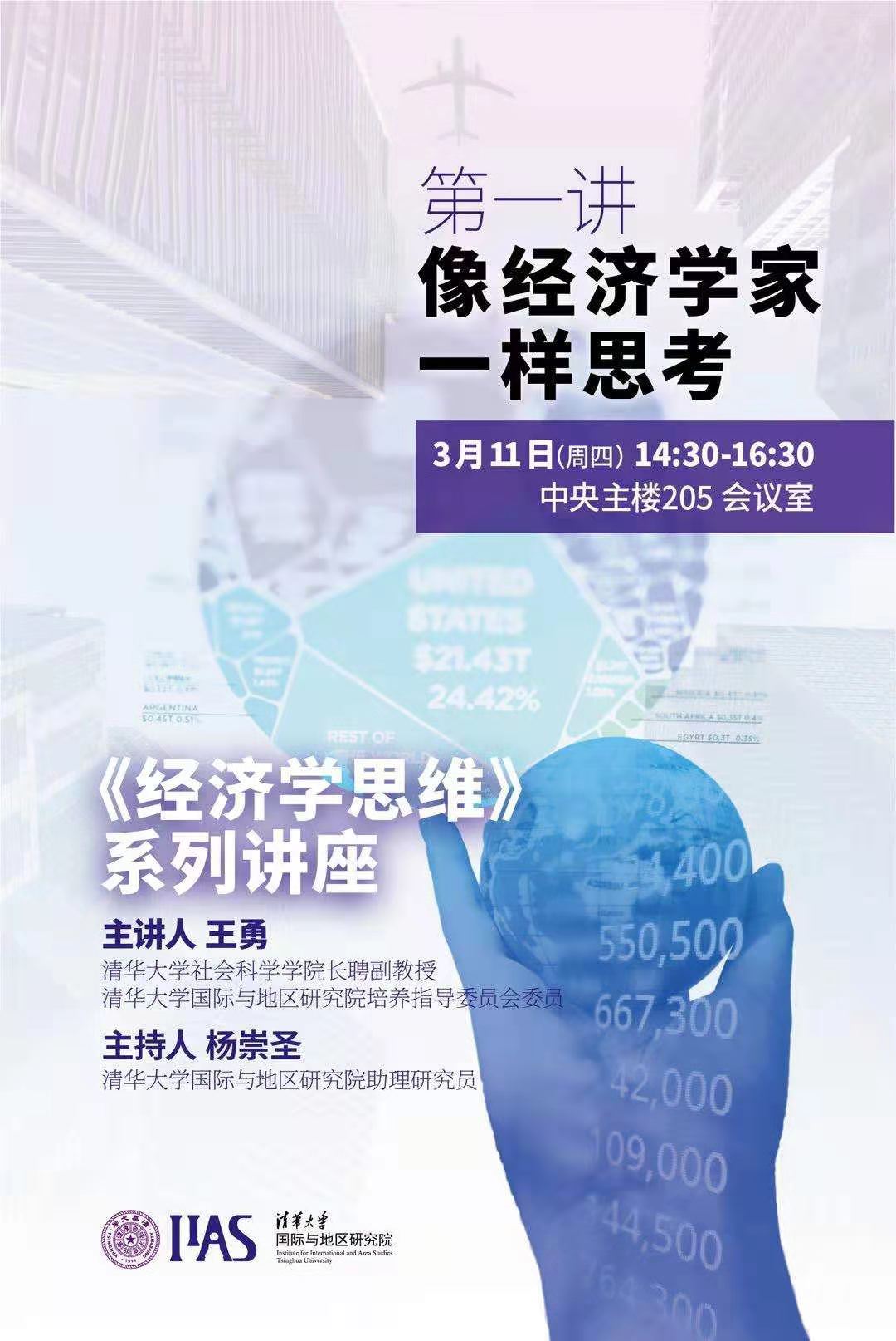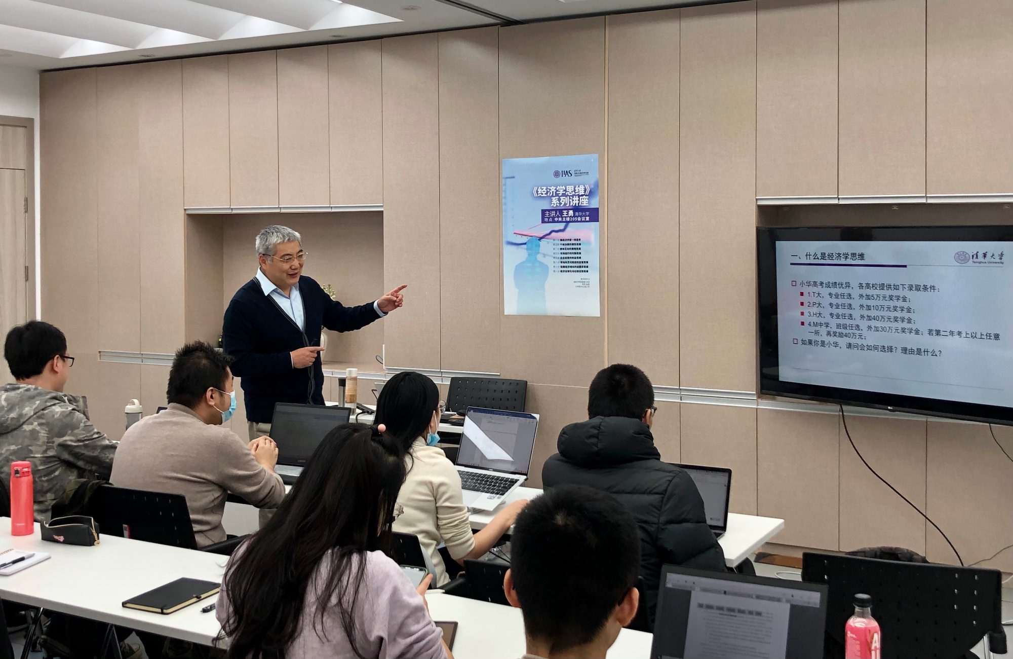 • 2021年3月11日下午,多多博彩 新学期首场系列讲座——《经济学思维》在中央主楼205开讲,主题为“像经济学家一样思考”。本次系列讲座邀请了社科学院王勇副教授作为主讲人,旨在为清华学子“修身、齐家、治国、平天下”的终身成长提供必备的经济学思维训练。