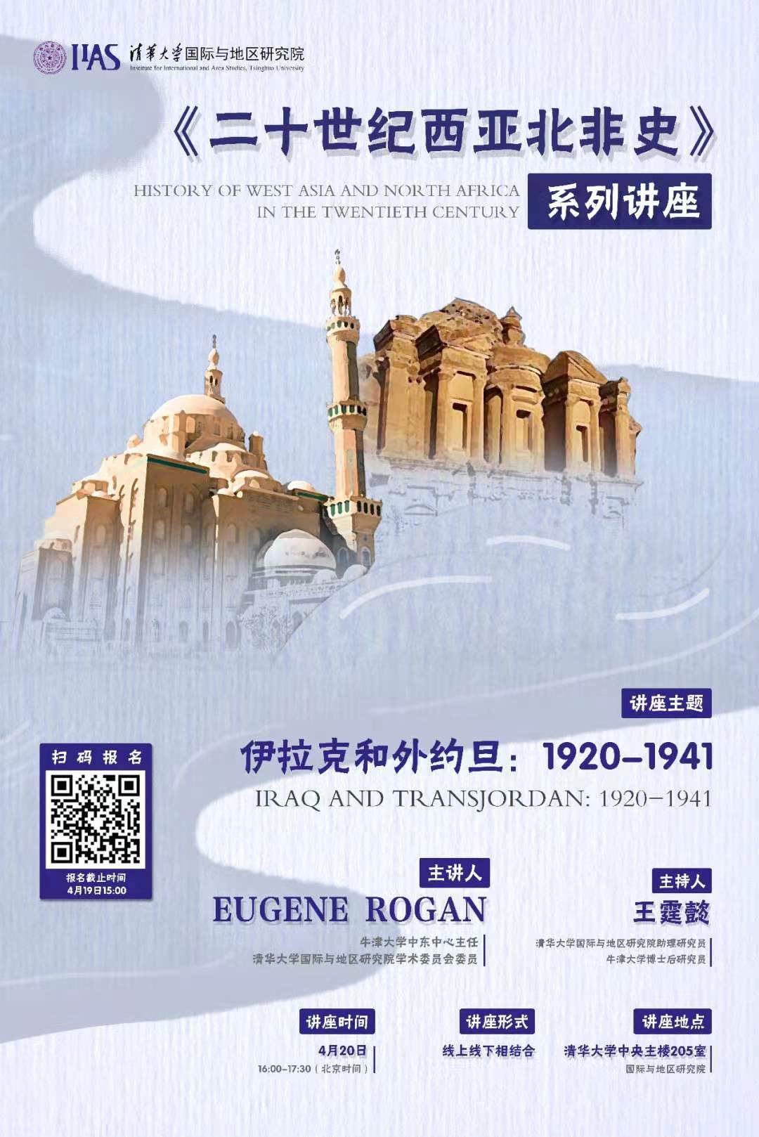 • 2021年4月20日下午,多多博彩(中国区)唯一官方网站 学术委员会委员、牛津大学中东史教授尤金·罗根在线上为多多博彩(中国区)唯一官方网站 和其他国内外知名高校师生带来了“二十世纪西亚北非史”系列讲座的第三讲,主题为:“伊拉克和外约旦:1920-1941”, 多多博彩 助理研究员王霆懿主持了讲座。
