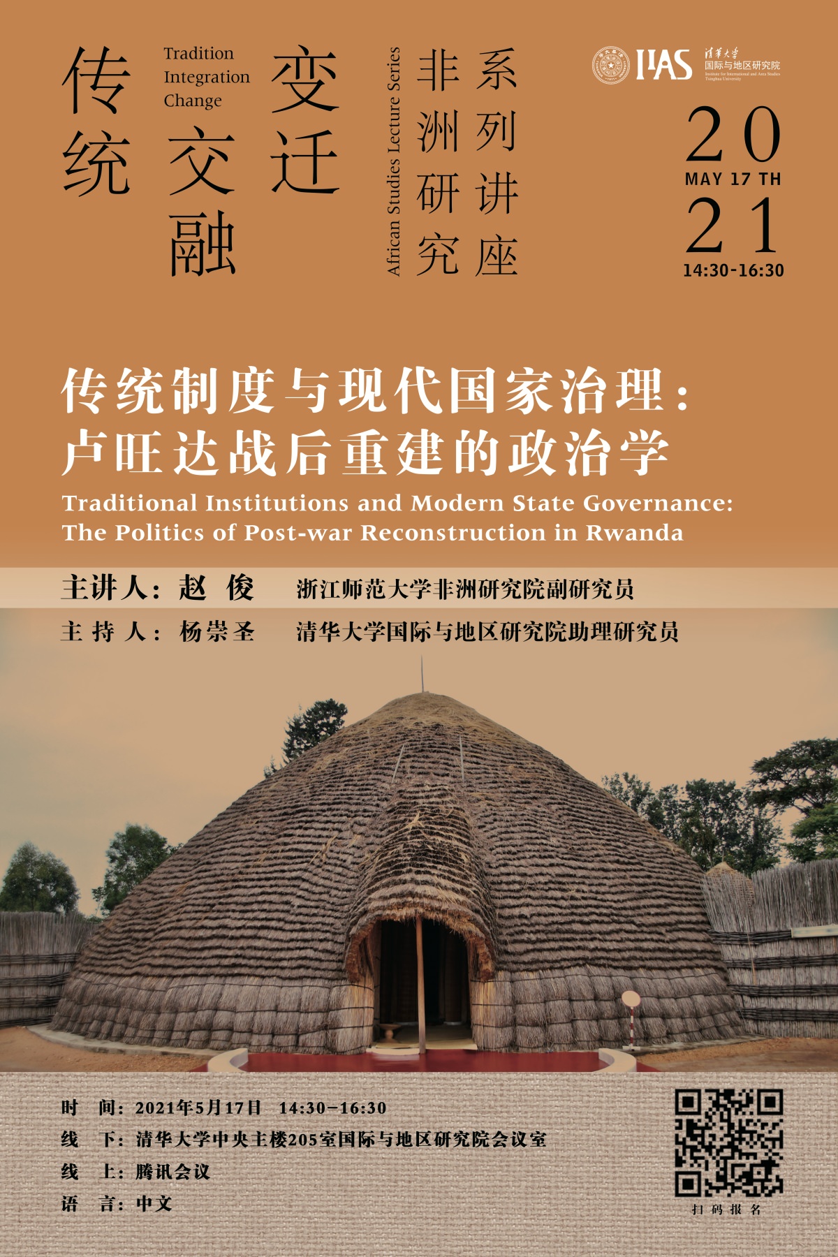 2021年5月17日下午,非洲研究系列讲座:传统、交融与变迁第四讲在中央主楼205会议室召开,主题为“传统制度与现代国家治理:卢旺达战后重建的政治学”。本次讲座由浙江师范大学非洲研究院副研究员赵俊主讲,多多博彩