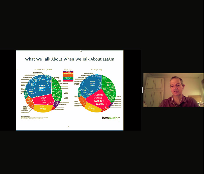 作为系列讲座的第一讲,拉齐教授首先从宏观层面为大家梳理拉丁美洲地区的基本情况和历史共识,他试图总结出拉丁美洲地区共同的九个特性,来让听众更好地理解这一地区。他所概括出的九个方面包括:第一,受到西方殖民侵略历史的影响,拉丁美洲成为最大的具有地理连续性的拉丁语地区,同时延续着美洲当地的土著语言和少数其他外来语言。第二,拉丁美洲各国的人均国民生产总值相对处于同等水平,大多数国家都是中等收入国家,地区内差异小。第三,在拉丁美州普遍存在不平等现象,贫富差距悬殊。第四,拉丁美洲的自然资本丰厚,人均自然资源较高,比如人均土地面积。第五,拉丁美洲国家主要出口的是初级产品,占比一般在60%以上,且各国出口的初级产品类型主要取决于其具有相对优势的自然或人力资源。第六,拉丁美洲大多数国家高度城市化,城市人口占总人口比例高。第七,拉丁美洲的人口和种族混杂,主要源自印第安原住民、殖民时期的欧洲移民和来自非洲的黑奴。第八,拉丁美洲的国家大多具有共同的经济和独立发展历史,都曾在19世纪经历过内战,但此后州内国家间鲜少有战争发生;各国都效仿美国政治制度,但都拥有过曲折、不稳定的发展历程。第九,拉丁美洲的宏观经济长期不稳定,比如20世纪50到70年代的高通货膨胀率等。