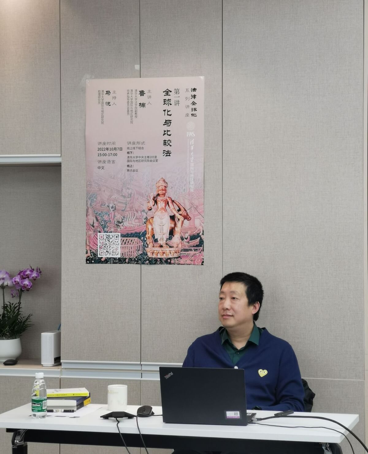 随后,鲁楠副教授分享了法律全球化研究的三个核心命题,即重绘世界法律地图、重新审视法律散播问题以及跨文明比较问题。针对第一个命题,鲁楠副教授认为,我们需要在新的理论基础上,重新绘制世界法律地图。既有世界法律地图中的国别地图过度琐碎,且无法摆脱民族国家标尺,能反映出来的问题有限。而法系地图过度宏观,且具有静态性,无法充分体现出具体的动态变化。最后,他引用美国的比较法学家乌戈·马太(Ugo Matteil)的文章指出,法律模式地图需要引入复分法,以拓展我们对于法律世界多样性的认识,这对区域国别研究具有借鉴意义。而针对法律散播问题,鲁楠副教授则认为,传统法律移植理论的困境在于过度简化,忽略了层级划分和法律散播的复杂性以及移植对象的多样性,而法律散播则能体现复杂性。最后,鲁楠副教授就跨文明比较问题进行阐释,他认为这是区域国别研究的核心。他提出,在研究一个国家的法律时,不应该只注重法律本身的研究,而是应当深入了解对象国的历史、经济和社会状况,置身于对象国的文明中,将法律作为其文明的一部分加以研究,以一种广阔的观察视角去研究跨文明的问题。