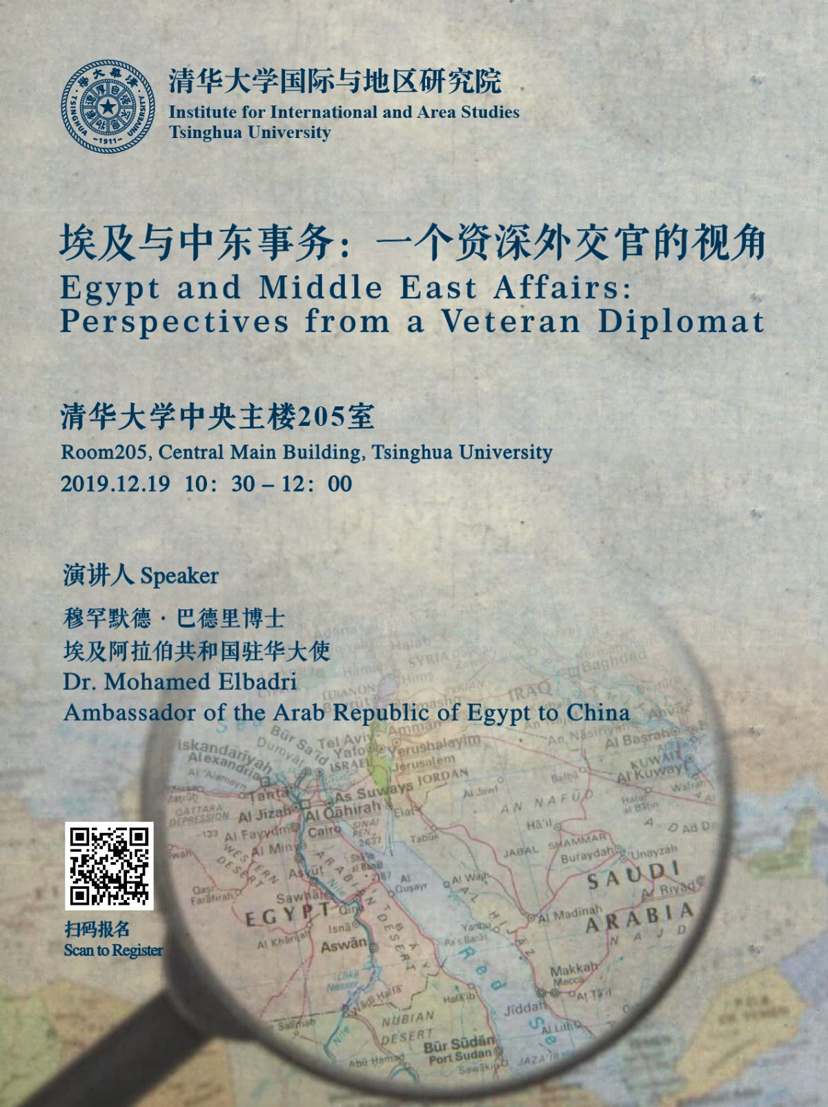 • On December 19, 2019, Dr. Mohamed Badri, the current Egyptian Ambassador to China, gave a lecture entitled “Egypt and Middle East: The Perspective of a Senior Diplomat” at the Institute of International and Area Studies (IIAS) of Tsinghua University.