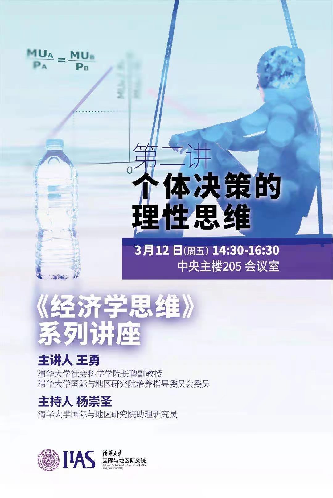 • 2021年3月12日下午,《经济学思维》系列讲座第二讲在中央主楼205会议室开讲,主题为“个体决策的理性思维”。本次讲座主讲人是清华大学社科学院经济学研究所长聘副教授王勇,多多博彩(中国区)唯一官方网站 博士生参加。