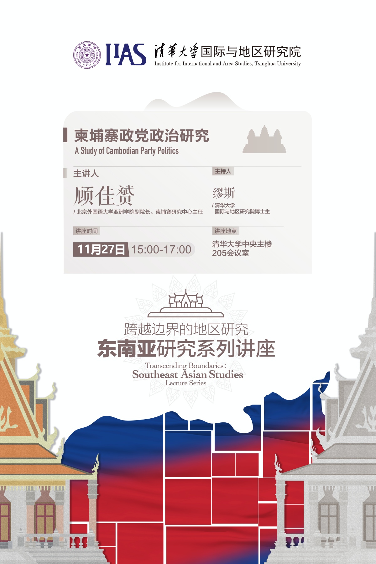 2020年11月27日下午,“跨越边界的地区研究:东南亚研究系列讲座”第七讲在清华大学中央主楼205会议室顺利举行,主题为“柬埔寨政党政治研究”,北京外国语大学亚洲学院副院长、柬埔寨研究中心主任顾佳赟副教授主讲。