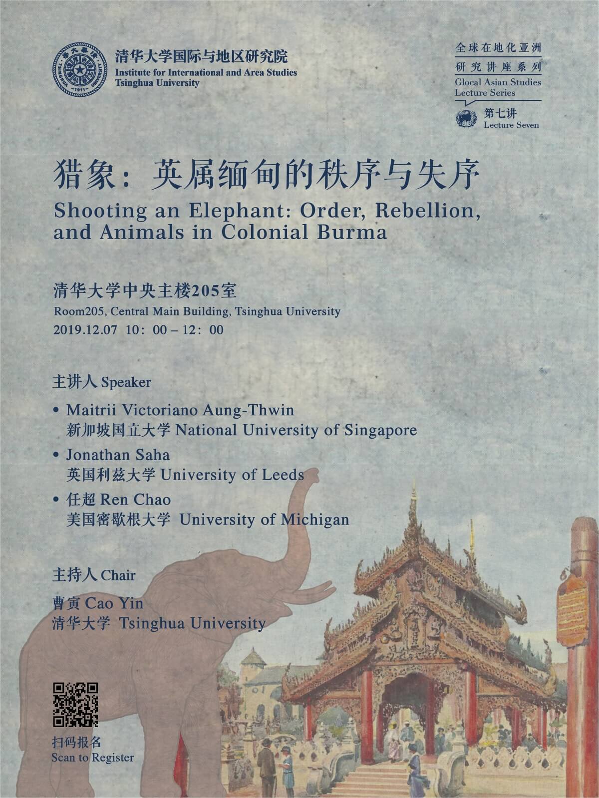 ,为院内博士生带来了本学期“全球在地化亚洲研究讲座系列”第七讲,本讲主题为“猎象:英属缅甸的秩序与失序(Shooting an Elephant: Order, Rebellion, and Animals in Colonial Burma)”。