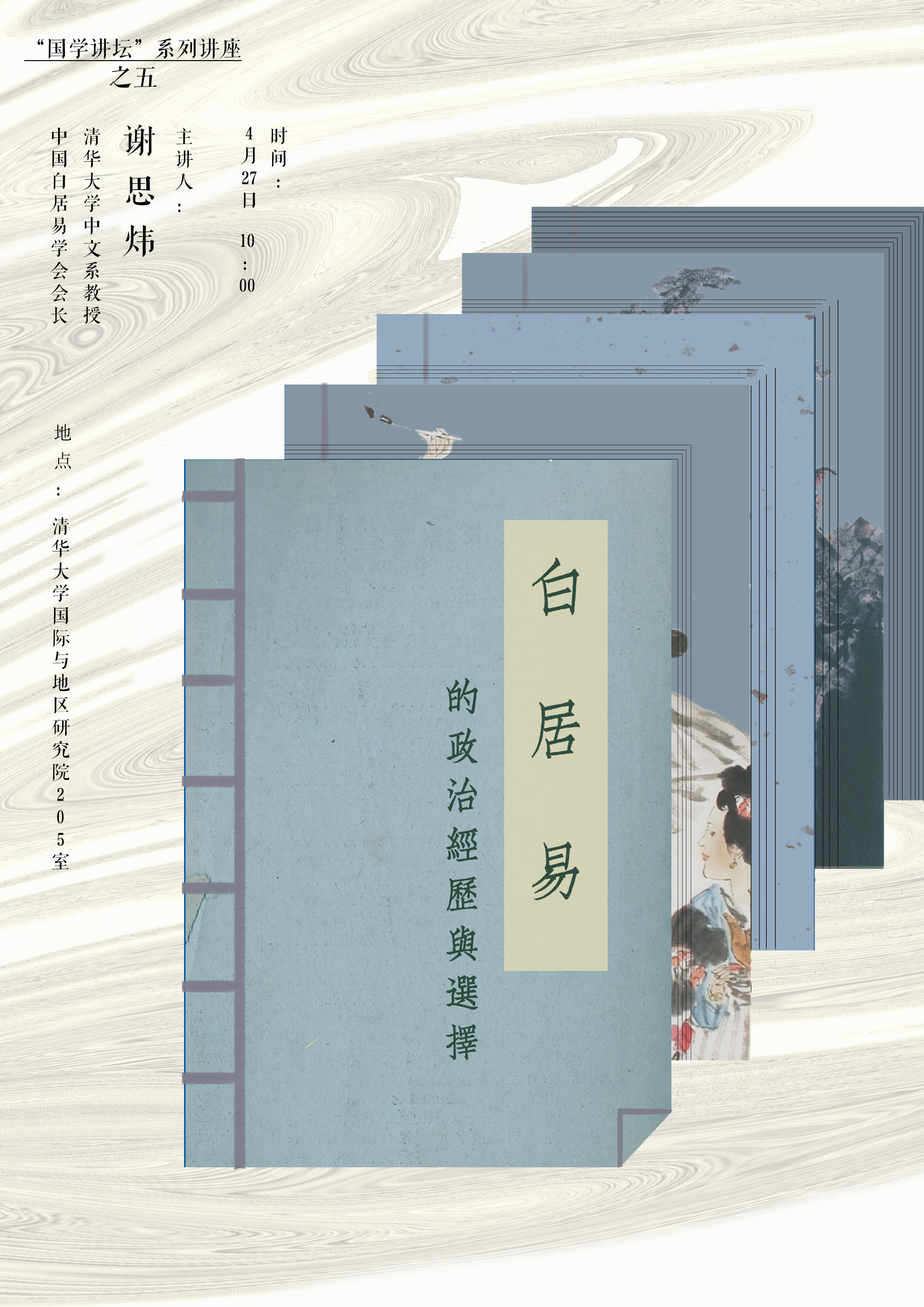清华大学中文系教授谢思炜主讲,主题为“白居易的政治经历与选择”。谢思炜老师从自身接触白居易的经历开始讲起,引出讲座题目的由来。