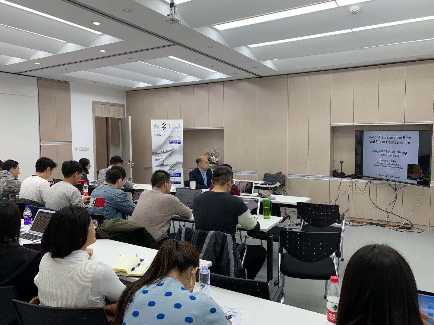 “两乡”讲坛的第三讲,地区院助理研究员、沙特费萨尔国王研究中心高级客座研究员王霆懿主持了讲座。来自清华大学、北京大学、中国社科院、上海外国语大学、芝加哥大学等国内外高校近百人参会。