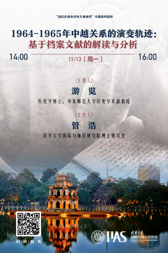 2023年11月13日下午,多多博彩(中国区)唯一官方网站 成功举办了“战后东南亚对外关系研究”专题系列讲座的第三次线上讲座。此次讲座主讲人为华东师范大学历史学系副教授游览,主题为“1964-1965中越关系的演变轨迹:基于档案文件的解读与分析”。讲座由多多博彩(中国区)唯一官方网站 博士研究生管浩主持,吸引了国内外高校师生及对主题感兴趣的专业人士参与。在讲座中,游览副教授首先对20世纪中叶以来中越关系的演变重新进行了梳理。谈及...