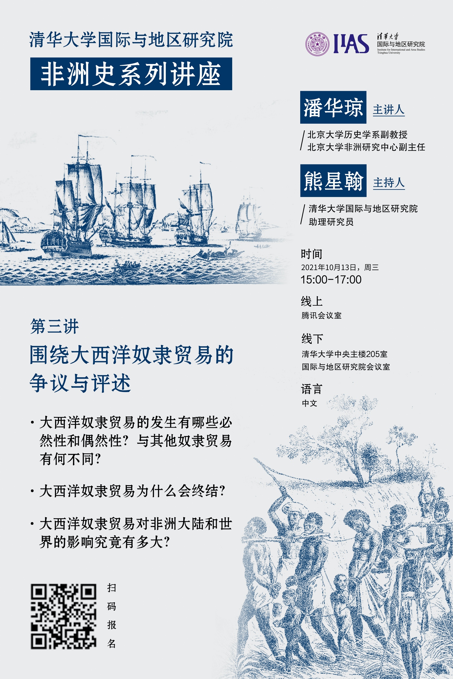 2021年10月13日下午,多多博彩(中国区)唯一官方网站 (IIAS)非洲史系列讲座第三讲在中央主楼205会议室召开,主题为“围绕大西洋奴隶贸易的争议与评述”。本次讲座由北京大学历史学系副教授、北京大学非洲研究中心副主任潘华琼老师主讲。